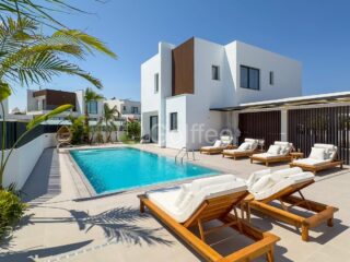 Garantovaný výnos 5 až 8 % ročně Velká vila s bazénem a pozemkem kousek od pláže na Kypru